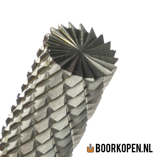Hardmetaal stiftfrees type B (ZYAS) - 9,6mm. Dit type is de cilindervorm met kopvertanding. Universele dubbele kruisvertanding maakt deze geschikt voor alle metaalsoorten en is te gebruiken op hoog toerental in een speciaal daarvoor ontworpen rechte of perslucht slijper. Uit de premium line met zeer lange standtijd.