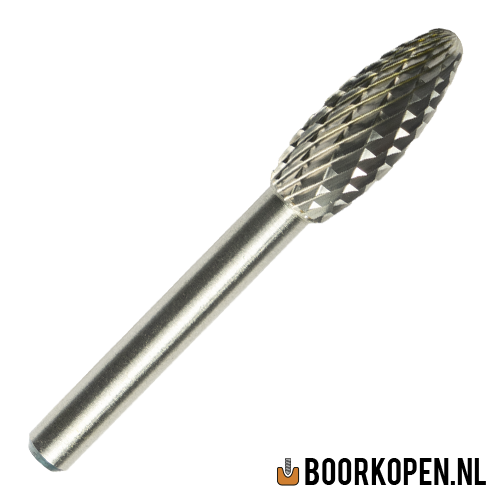 Hardmetaal stiftfrees type H (FLF) - 12,7mm. Dit type is de vlam. Universele dubbele kruisvertanding maakt deze geschikt voor alle metaalsoorten en is te gebruiken op hoog toerental in een speciaal daarvoor ontworpen rechte of perslucht slijper. Uit de premium line met zeer lange standtijd.